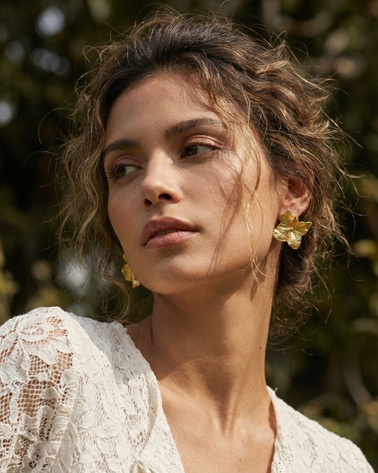 Aretes Topo Ramita Mini Flor Sauco Mediano