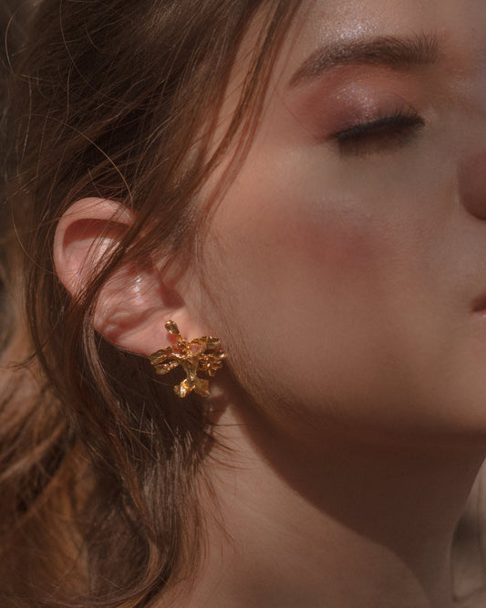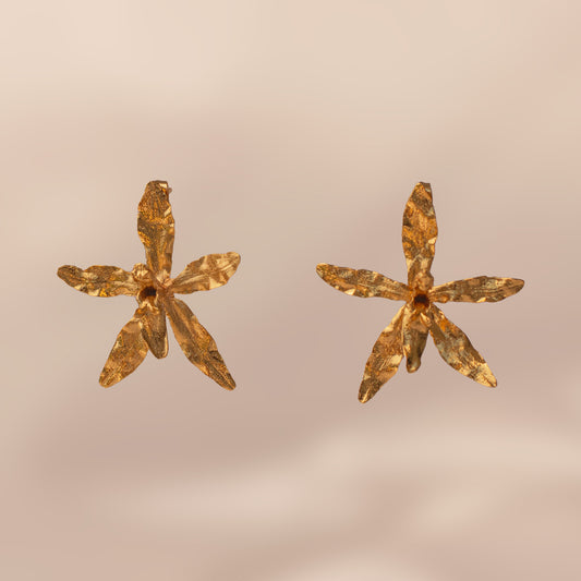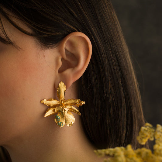 Odontoglossum Orchid & Branch Earrings with Quartz
