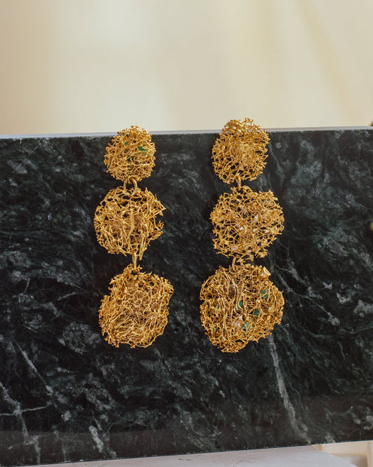 Brassia Orchid, Pine Leaf & Elderflower Emerald Earrings