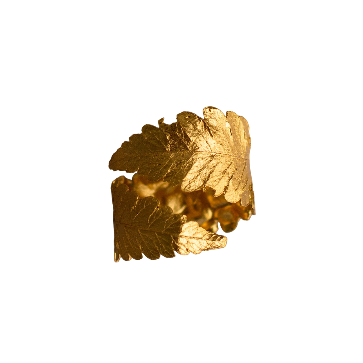 El Anillo Entero Helecho Canela es una pieza de arte natural que captura la esencia del bosque. Originarios de nuestro jardín, estos helechos canela son transformados meticulosamente en bronce y finalizados con un baño de oro de 24 kilates. Ideal para llevar en cualquier ocasión, este anillo es una declaración de estilo para quienes aprecian la singularidad y el encanto de la naturaleza.