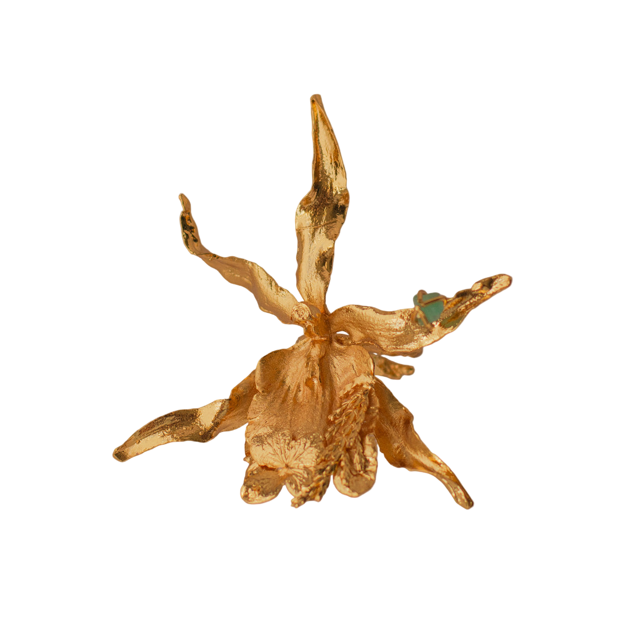 Lleva contigo un pedazo de la naturaleza con nuestro Anillo Orquídea Brassia Esmeralda. Cada orquídea, cuidadosamente seleccionada y transformada en una obra de arte única, es inmortalizada en bronce y realzada con un baño en oro de 24 kilates y esmeraldas preciosas. Este anillo no es solo una joya, es un recordatorio diario de la belleza interior y la fuerza femenina. Representa el equilibrio y la gracia, ofreciendo a quien lo lleva una conexión íntima con la serenidad y la elegancia de la naturaleza.