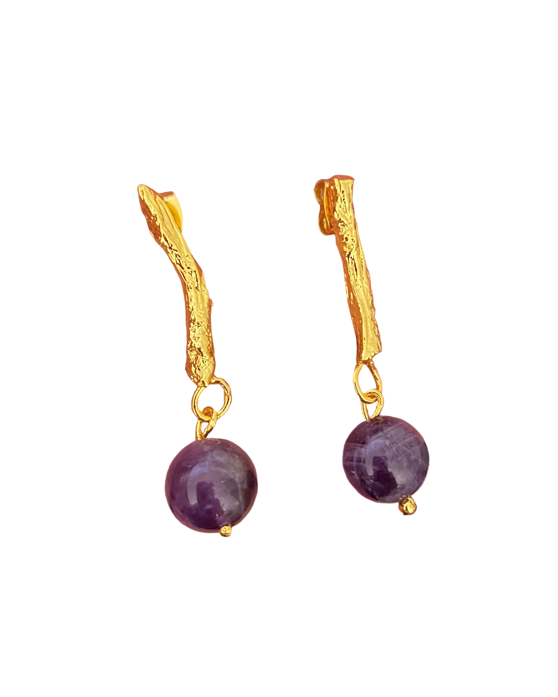 Aretes ramitas Largos con Amatistas naturales inmortalizadas en metal y echpapados en oro de 24 kilates y protección en laca cataforética (evita daños por el tiempo y el ambiente). La imagen es de referencia y el producto final puede tener variaciones mas que todo en forma y tamaño, cada joya es unica debido a que se realiza con una pieza original natural. No utilizamos moldes. #SomosNaturalezaViva