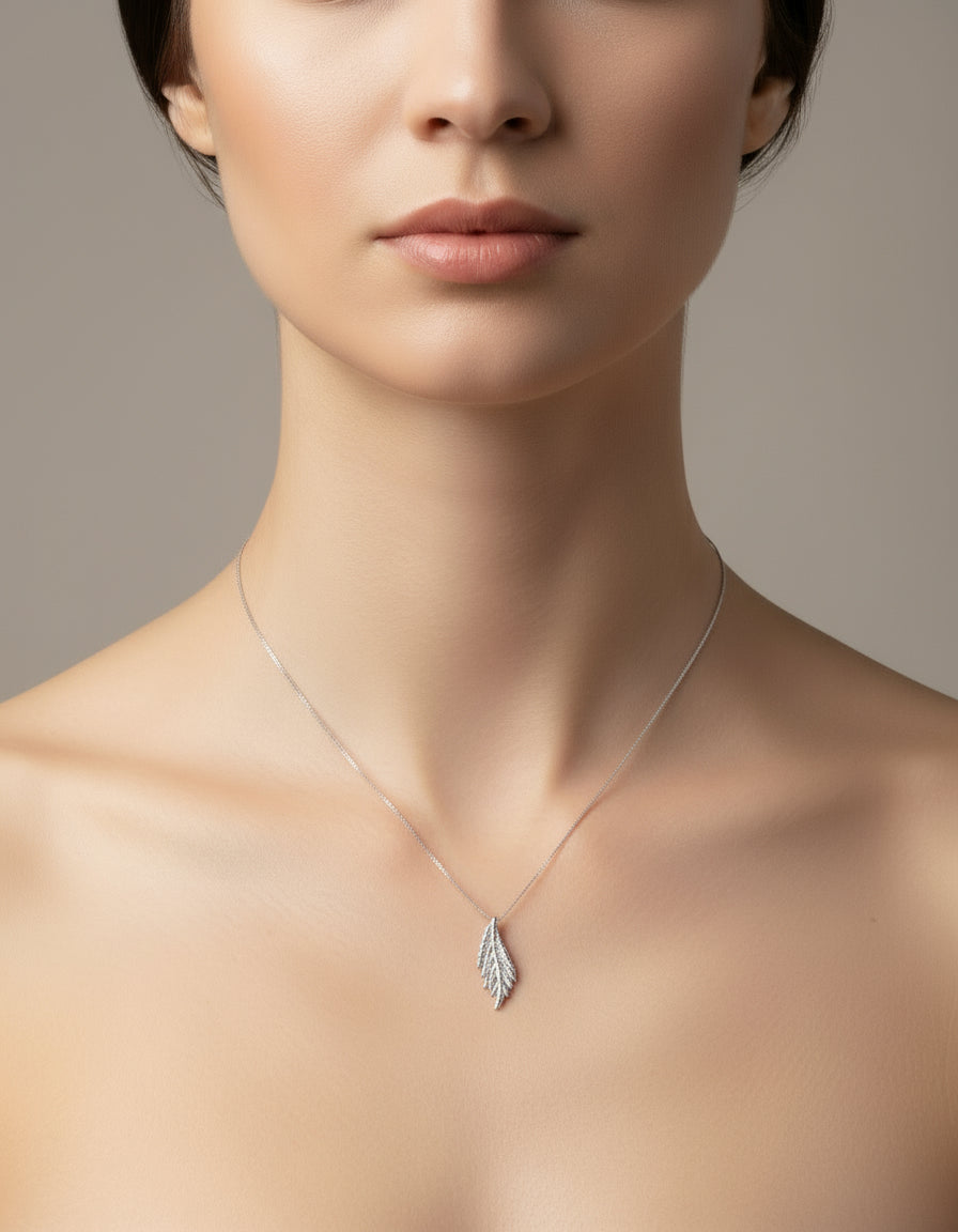 Gargantilla Hoja de Pino Pequeño Inmortalizada en Plata 925.